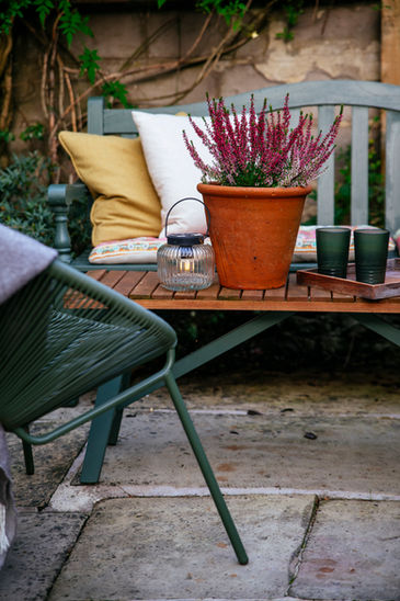 Externally a secluded south facing flag stone courtyard garden with cottage plants and lounge seating, provides the perfect spot for chatting and drinks with the occasional moo from nearby cows.